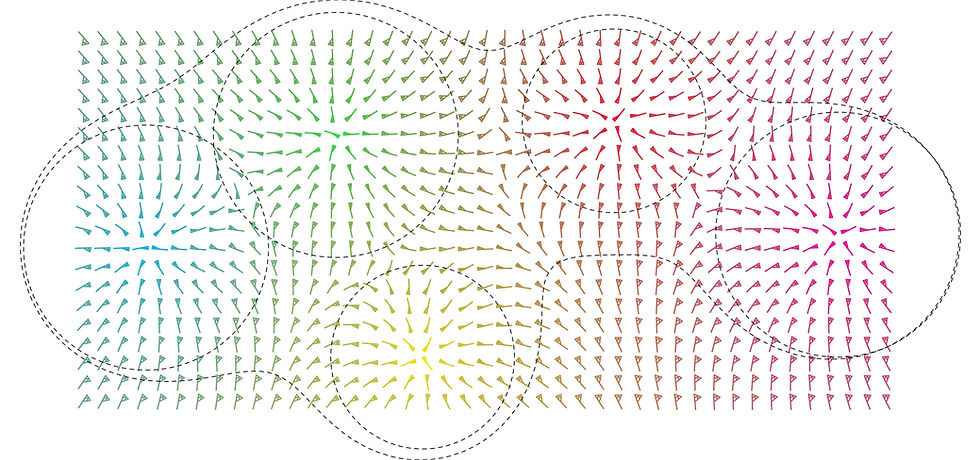 The hanging installation was made of over 800 panels. These were each custom laser cut, assembled, and clad with custom cut images. From underneath the gradual rotation of the panels towards the apex of each vault can be seen. This pattern helps produce a visually dynamic filter of the work that comes alive as you move around it, but also frames the work through the healthy turbulence that exists in the school and the work. It the experimental nature of the school that is the common influence and thread that connects everything in the curriculum. This turbulence can be seen as the force that exposes new conditions within the bounds of the program.